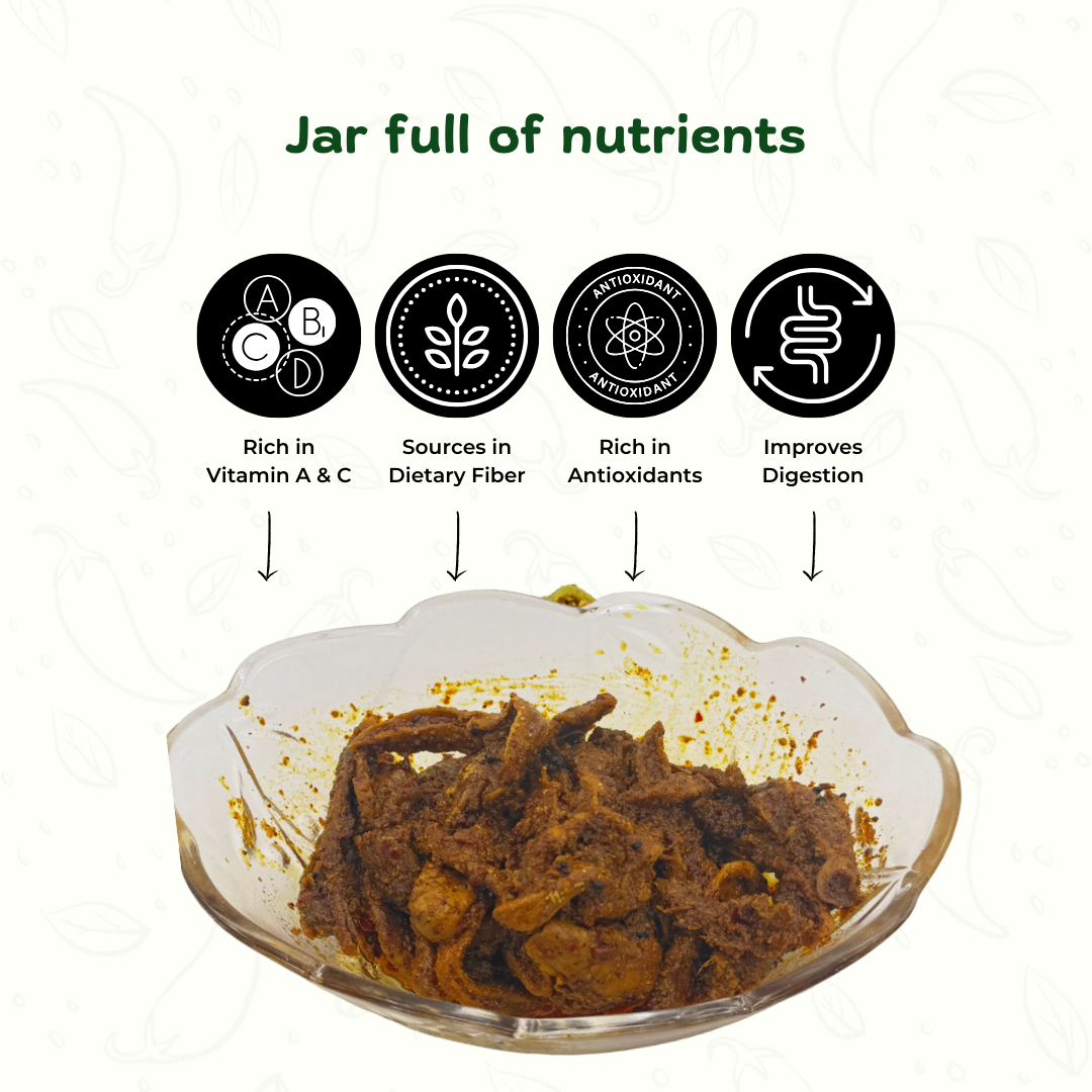 Bring home the authentic taste of tradition with our Mango Kasaunji Achar, a deliciously tangy and spicy pickle made from handpicked raw mangoes. Unlike regular pickles, kasaunji has a semi-liquid, saucy texture that soaks every bite with bold flavors of mustard oil and freshly ground spices. Prepared lovingly in small batches by women artisans, this achar adds the perfect kick to parathas, puris, dal-chawal, or even simple snacks.